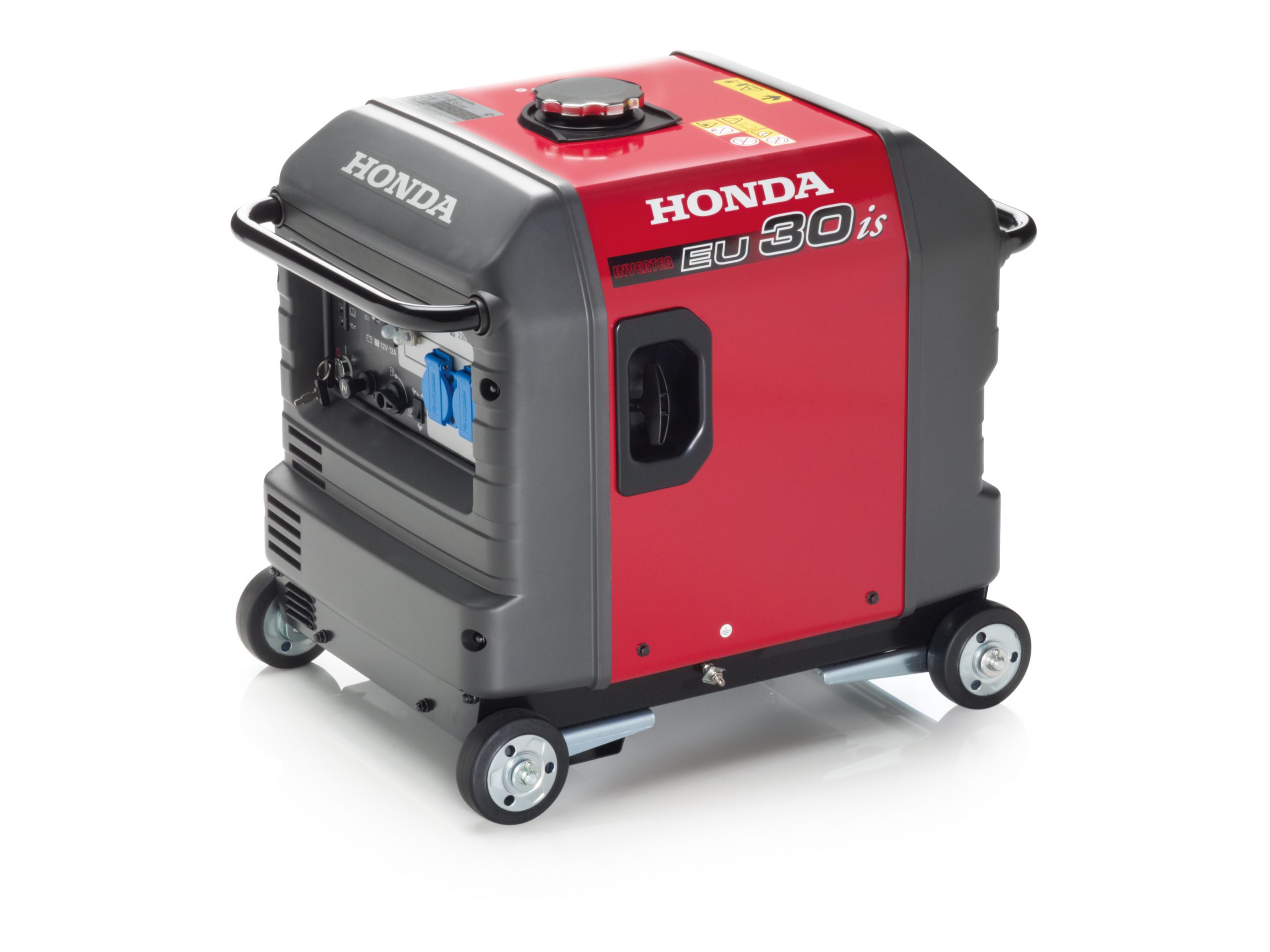 Hiljainen ja kevyt generaattori, jossa myös 12V ulosotto akkujen lataamista varten.